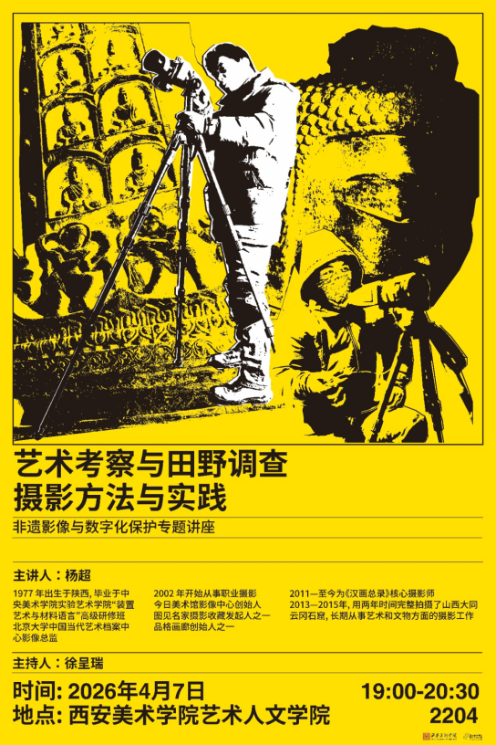 讲座回顾||艺术考察与田野调查摄影实践专题讲座4月7日晚,摄影师、文物影像专家杨超老师,为艺术人文学院师生带来了“艺术考察与田野调查摄影方法与实践——非遗影像与数字化保护专题讲座”,讲座专门针对艺术人文学院每年开设的艺术考察课程,为院内师生呈现了一堂兼具理论深度与实践经验的公开课。杨超老师1977年生于陕西,毕业于中央美术学院实验艺术学院“装置艺术与材料语言”高级研修班,现任北京大学中国当代艺术档案中心影像总监,...