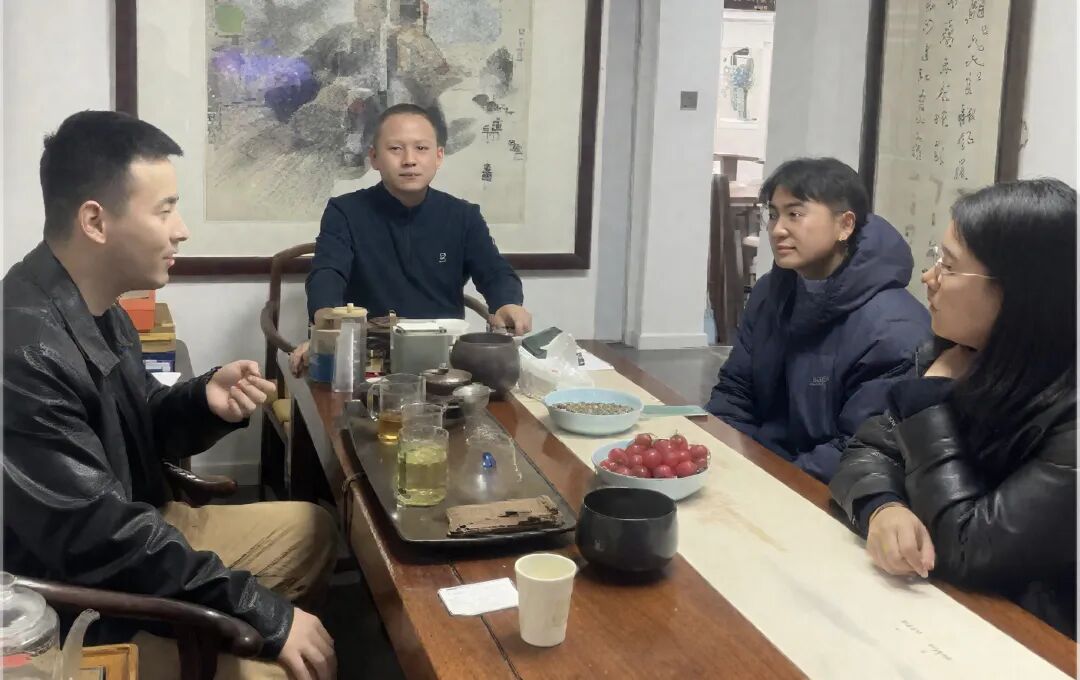 随后,团队走进博艺轩文化传媒有限公司(湘子庙街博采画廊),与负责人杨富升就艺术市场运营、书画拍卖策划、直播宣传等岗位需求深入对接。画廊方表示,我院艺术管理、美术学等专业学子的理论素养与文案表达能力高度契合行业需求。辅导员张恒超针对学生兼职实习时间、安全保障、能力培养等事宜与画廊沟通敲定细节,双方商定将开展校园宣讲、定向培养等合作,助力学子了解艺术市场一线动态、提升实操能力。
