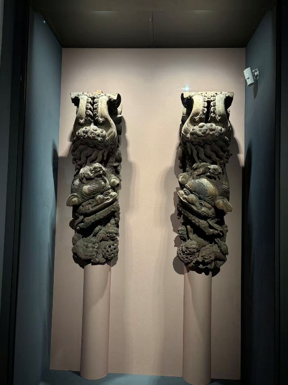 最后,我们走进“徽州建筑”展馆,目光瞬间被精巧绝伦的徽州木雕所吸引。这些精美的木雕不仅是一件件艺术品,更融入了徽州人民的日常生活中。他们常被用于旧时建筑物和家庭用具上的装饰,遍及城乡,宅院内的屏风、窗楹、栏柱,日常使用的床、桌、椅、案和文房用具上均可一睹木雕的风采,几乎是无村不有。手法多样,有线刻、浅浮雕、高浮雕透雕、圆雕和镂空雕等。