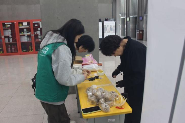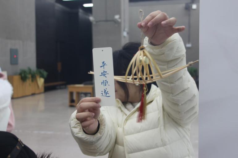 在志愿者的细致讲解与协助下,同学们逐步体验从材料选择到编织成型的全过程。每一次弯折与穿引,不仅是技能的习得,更是一次心灵的安抚。竹材的温润触感与编织的节奏感,为参与者带来专注而宁静的艺术疗愈体验。