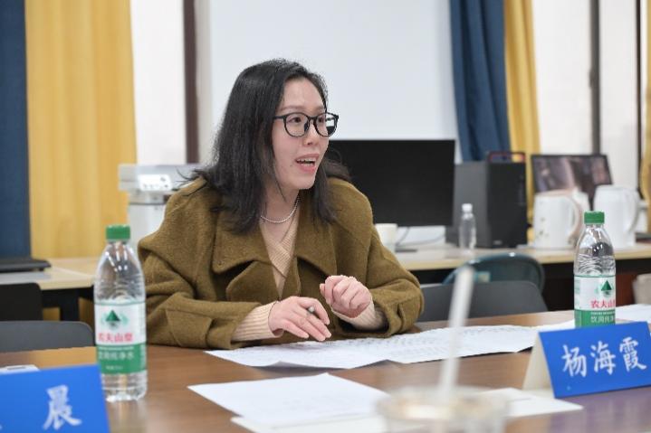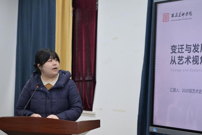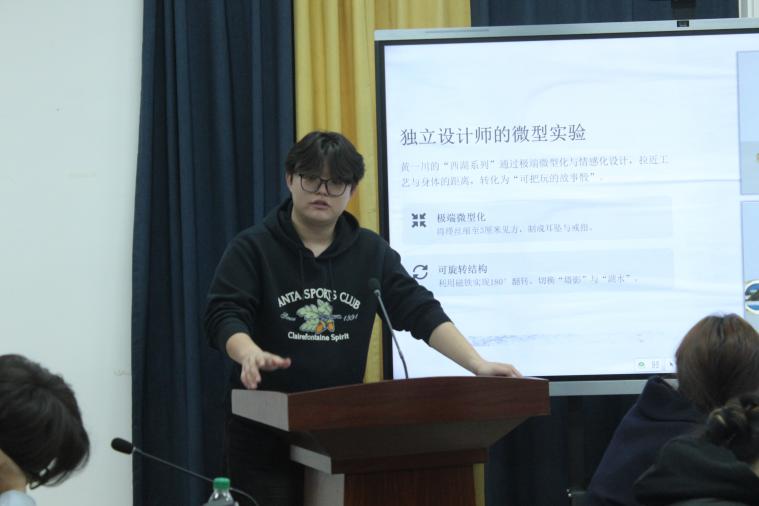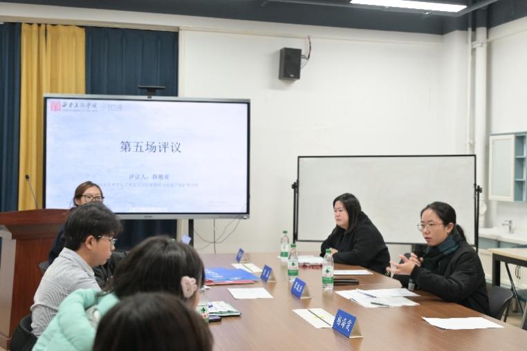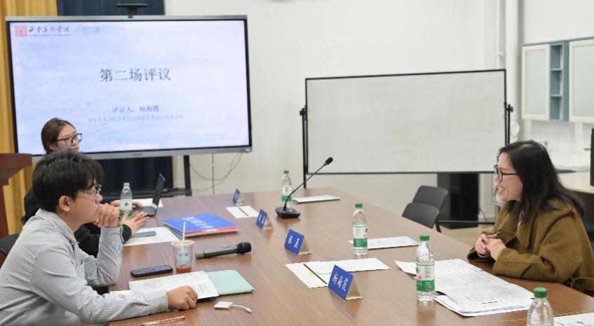 西安美术学院人文艺术学院艺术设计学系讲师杨海霞老师对第二场五位同学的发言进行了评议。杨海霞老师对同学们的参与表现与研究选题展开了积极点评,既肯定不同年级学生参与展现出的学习成长轨迹,也认可大家的选题源于研学考察、寒假作业等现实生活,兼具个人思考且选题质量佳;同时老师指出大一同学虽积极参与研讨但稍显青涩,不过也赞赏其敢于参与、能从课堂教学内容中总结个人见解的优点。老师的点评既看见成长闪光,也包容青涩不足,为同学们的持续进步锚定了方向、注入了信心。
