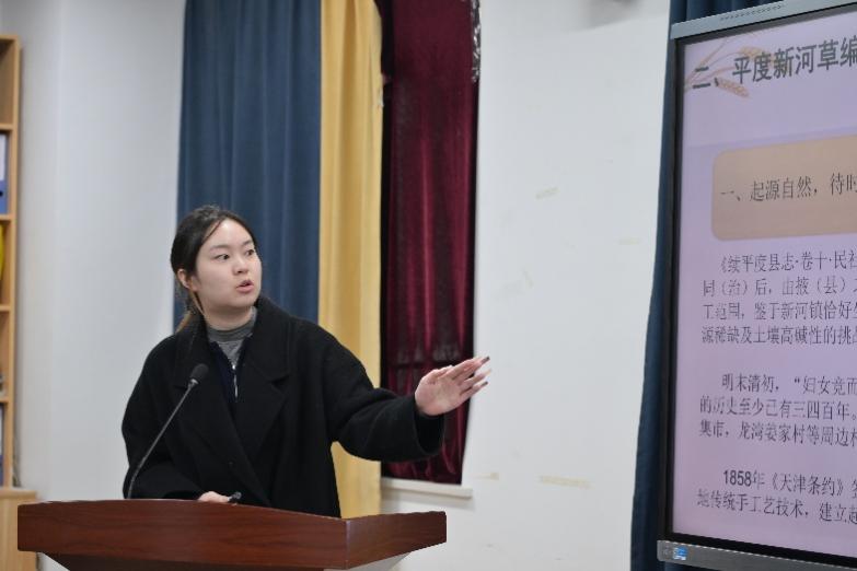 贾琪琪同学分享的内容为《传统草编工艺的当代转译——以山东新河草编为例》: