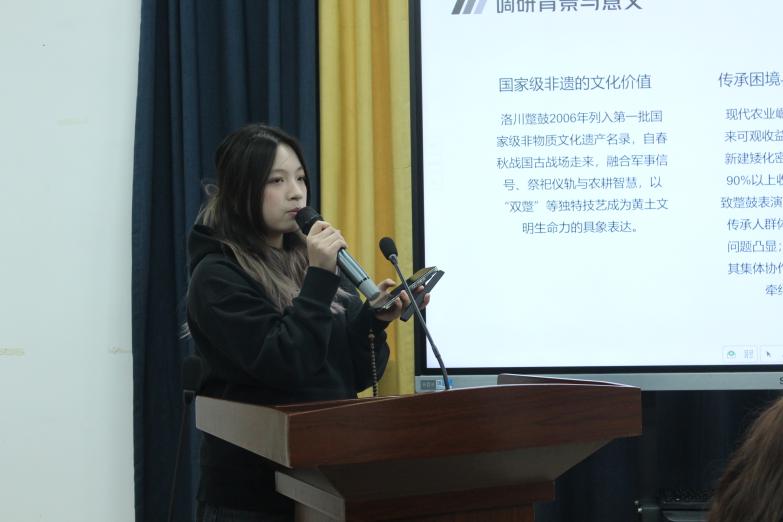 郭涵妮同学分享的内容为《黄土叩响处,槌落尘皆舞——洛川蹩鼓(现头村“双蹩”)技艺寻访》: