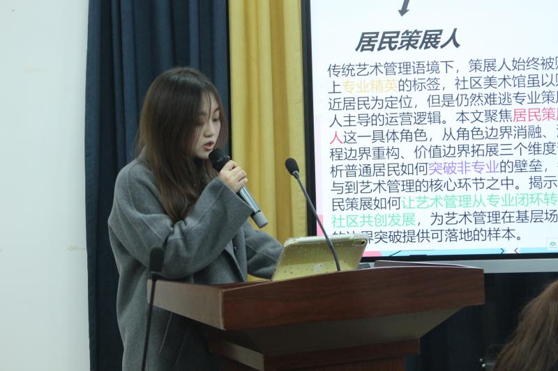 黄弋珂同学分享的内容为《社区美术馆中居民策展人角色的重构与艺术管理边界突破》: