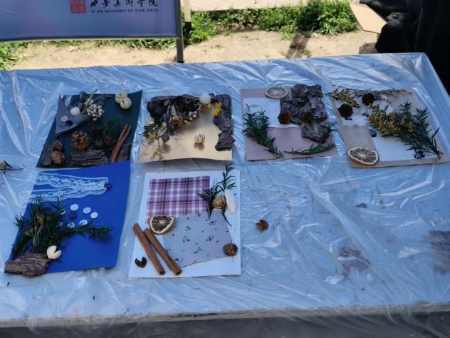 创作结束后,一幅幅各具特色的作品整齐摆放在长桌上。有的以树皮为基,勾勒出静谧山林;有的用干花与松果拼贴出盎然生机;还有的将柠檬片与格纹布搭配,呈现出别样的文艺气息。这些作品不仅是自然材料的组合,更是同学们内心世界的映射,承载着各自的情感与思绪。