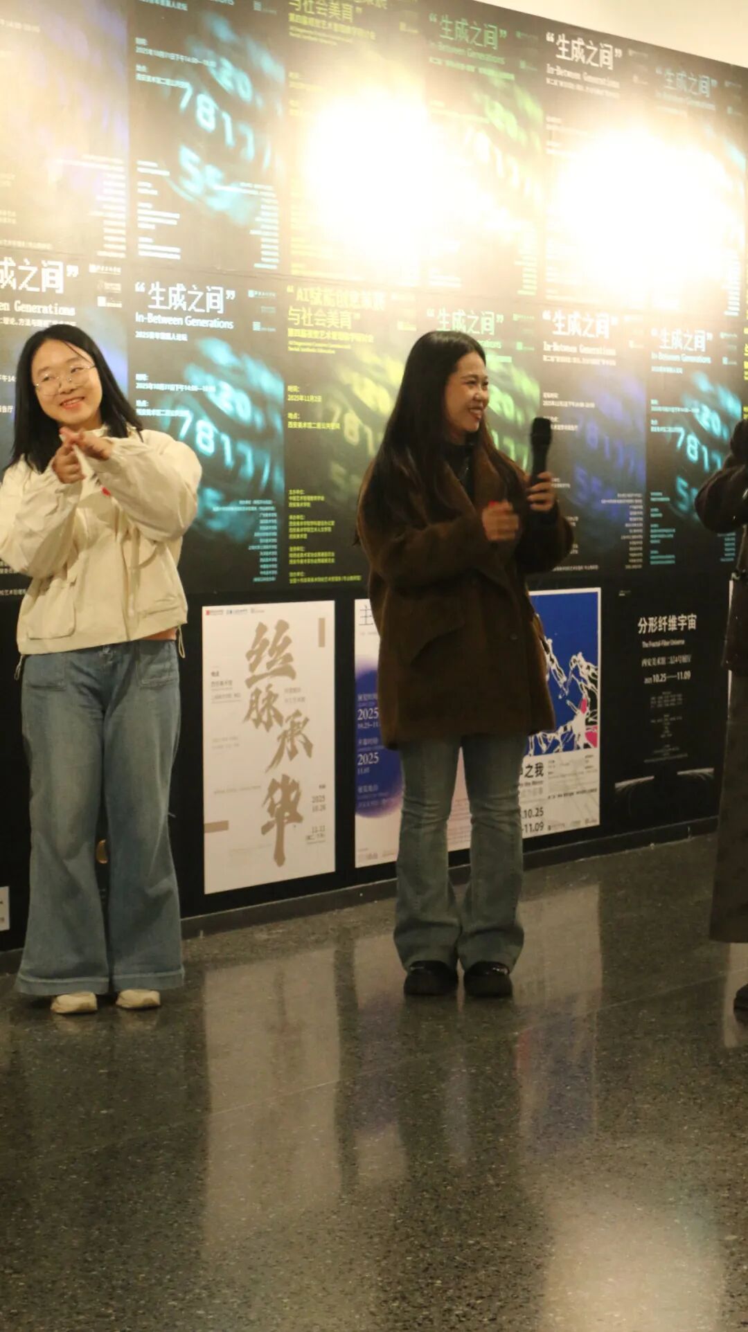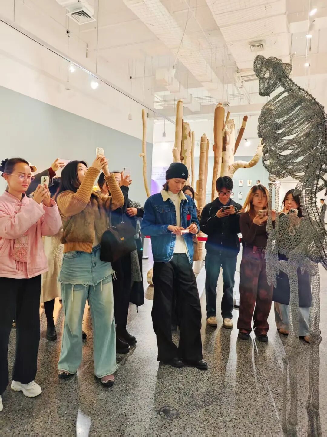 随后,大家跟随导览员步入“生成之间——第二届‘解构·重塑·赋魅’青年策展人主题联展”的展览现场。在流动的视觉叙事与艺术对话中,参与者不仅拓展了对当代艺术的感知维度,也在审美凝视的片刻,让心灵获得喘息与释放。