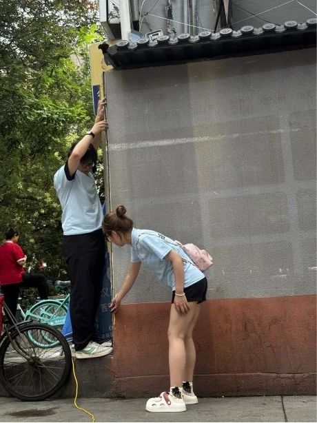 7月8日,经与商户、社区沟通协调解决电源问题,完成设备调试与方案优化,最终确定在钟楼社区钟楼小学实施墙绘升级。通过将墙面转化为 “会说话的故事书”、标识升级为 “亮眼引路牌”,既保留老街烟火气,又以科技赋能让历史文化记忆更易被感知。