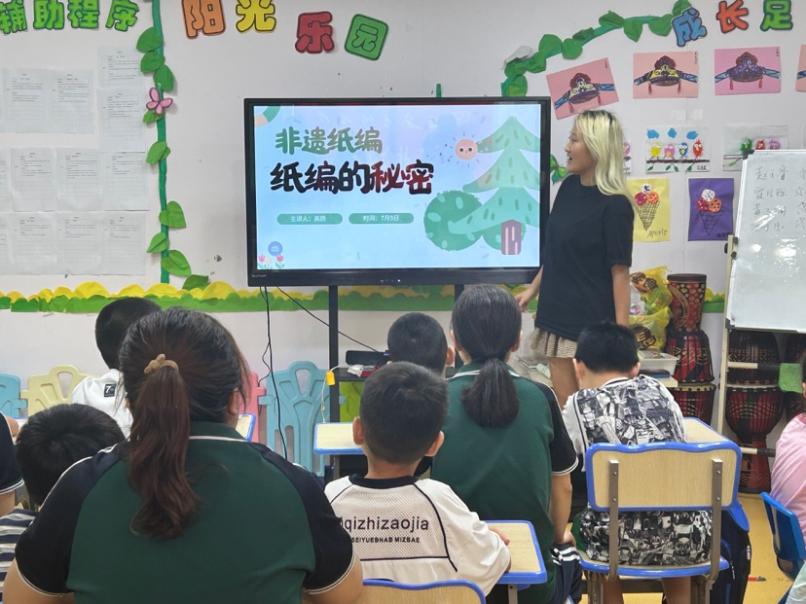 7月9日,艺术人文学院艺术疗愈社会实践服务队深入陕西七彩路康复中心,开展"非遗纸编进课堂"特色活动,推动非遗保护传承与特殊教育发展有机融合,让珍贵的文化遗产成为促进孤独症儿童康复成长的有效助力。