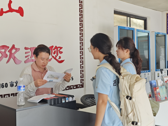 在少华山游客服务中心,工作人员热情地向实践团成员介绍了少华山景区日常的客流量情况,同时表示,尽管少华山拥有秀丽的自然风光和丰富的历史文化,但外界对它的认知不够深入。工作人员还提到,少华山目前仅有文创雪糕和冰箱贴这两种文创产品。这一情况反映出当下少华山文创产品开发不足,既无法满足大众消费需求,也难以充分体现少华山的历史文化。最后,工作人员对实践团此次调研活动给予了充分认可,对实践团已设计的文创产品也给予了高度评价。