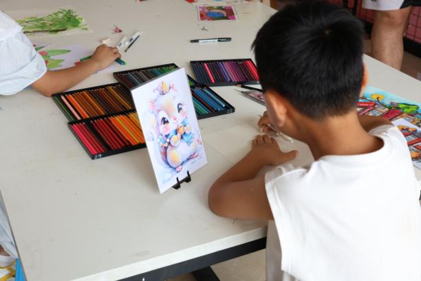 实践团队发挥专业优势,为孩子们设计趣味绘画课。志愿者引导孩子们用画笔描绘心中的美好世界,蓝天、小动物、童话场景在童真的创作中生动呈现。鼓励大胆表达与自由想象,每幅作品都成为孩子心灵的独特表达。