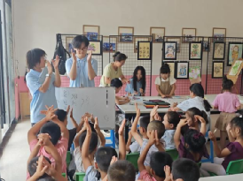 为深入贯彻落实国务院“大力提升国家通用语言文字普及程度”的战略部署,积极响应乡村振兴背景下基础教育阶段语言文字规范化的号召,西安美术学院艺术人文学院“艺语同行”推普助力乡村振兴志愿服务队,与大荔县苏村童心幼儿园携手开展“推普筑梦,美育启新”主题实践活动。活动通过美育浸润与语言推广的双向赋能,为乡村儿童搭建起语言与艺术的成长桥梁,以实际行动践行文化传承与教育振兴的使命。