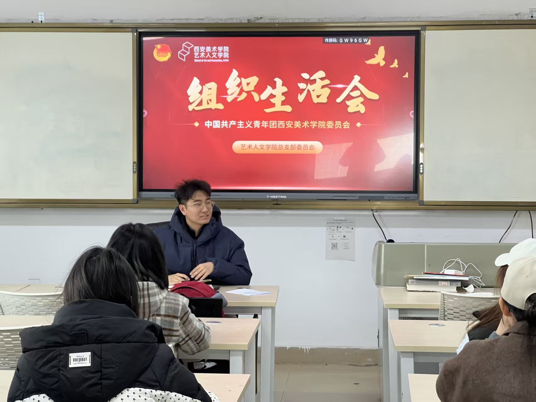 为深入学习贯彻习近平新时代中国特色社会主义思想和党的最新理论成果,切实强化共青团员的政治引领与思想淬炼,助力青年一代成长为社会主义合格建设者和可靠接班人,12月18日,西安美术学院艺术人文学院团总支于二号教学楼 2209 教室召开团员组织生活会,会议由23级美术学专业团总支副书记汤可欣主持。
