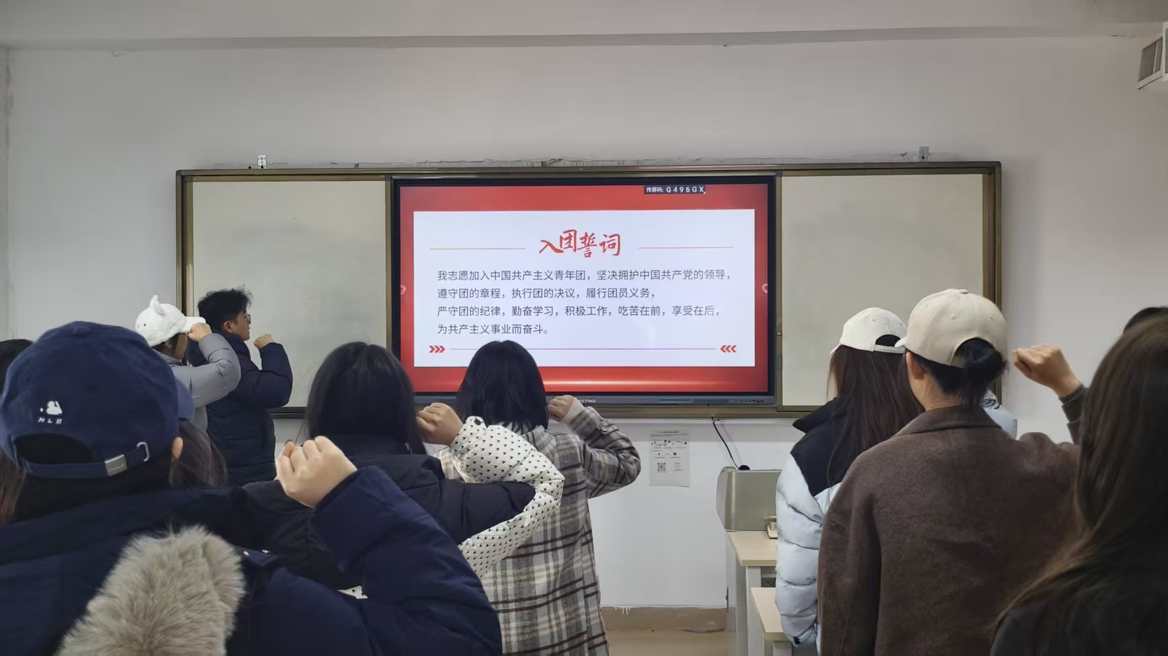 为进一步强化团员的身份意识、责任意识与纪律意识,激励团员接续发挥先锋模范作用,现场全体团员起立,高举右拳,庄严重温入团誓词。