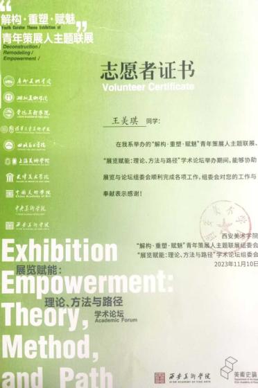 在实习实践中,先后积累4段行业一线实习经历,2022年担任艺术中心助教能够深度参与艺考生课程设计,将艺术管理理念融入教学实践;2023年在陕西省美术博物馆负责剪纸馆藏归档与史料考证,近距离触摸非遗文化的历史脉络;2024年统筹未来艺术家拍卖会全流程并担任主持人,全方位锻炼项目策划与现场把控能力;同年在西安铁塔寺社区设计非遗研学课程,带领居民体验非遗技艺,让文化传承落地生根。