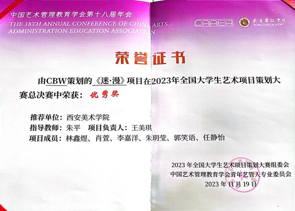 在学业方面,凭借对艺术管理行业的敏锐洞察与扎实积累,连续三年保持综合排名年级前1%,专业课平均成绩93分以上,2024-2025学年更是以综测、专业成绩双第一的表现成功保研。先后获得校特等奖学金,一等奖学金,并在2024—2025年获得国家奖学金。